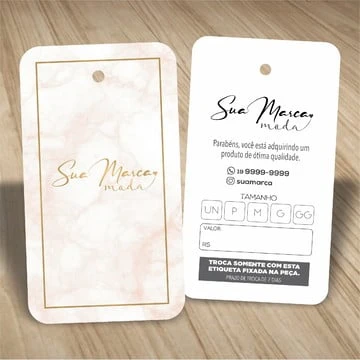 Destaque seu produto ou serviço com nossas tags 4 cantos arredondados! Elas são perfeitas para embalagens, identificação de produtos e muito mais. Com nossa tecnologia de impressão de alta qualidade, você pode personalizar suas tags com cores vibrantes e textos claros.
